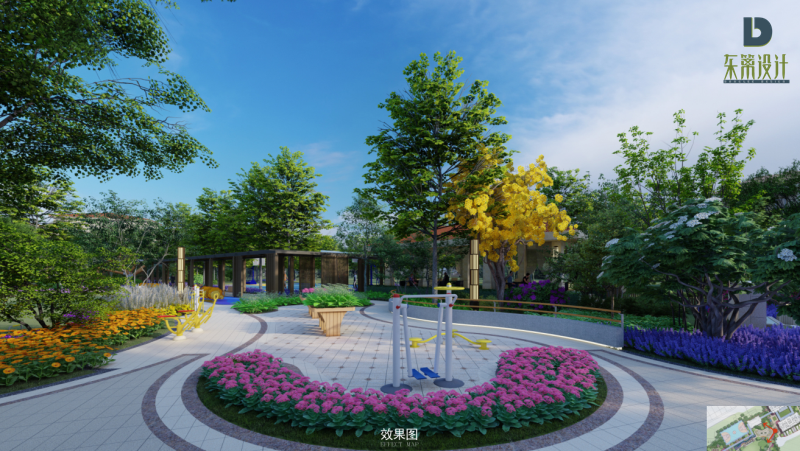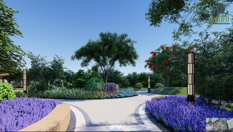 尊重自然規(guī)律,因地制宜,適地適樹。本項目注重原色的提煉:從山水中提取園路的曲線形式;從田園中提取園建的細節(jié)元素;從建筑中提取硬質(zhì)元素色彩。
