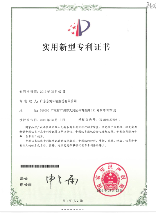 喜訊!東籬環境再獲一國家實用新型專利授權!