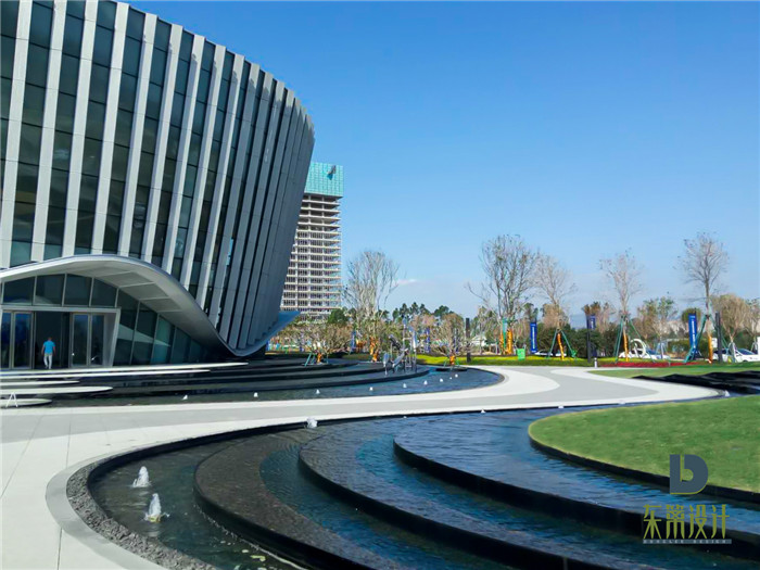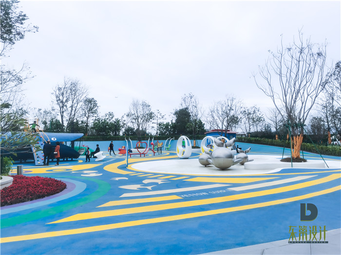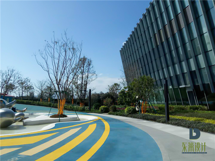 在景觀的打造中,以自然的律動打造美學之感,柔動的線條,噴涌而出的水柱,無不呼應著海上生活的樂趣。金茂·智慧科學城,東籬環(huán)境將景觀和建筑空間進行了深度融合。在游樂區(qū)空間建造中,采用高質量的彩色塑料地墊進行鋪裝。藍色的地墊,配合多種不同顏色的線條,打造靈動之感。