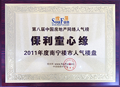 • ▲ 200905-2009年廣西南寧房地產(chǎn)博覽會(huì)百姓滿意樓盤人文景觀獎(jiǎng)