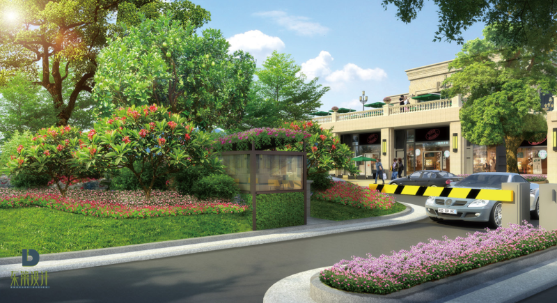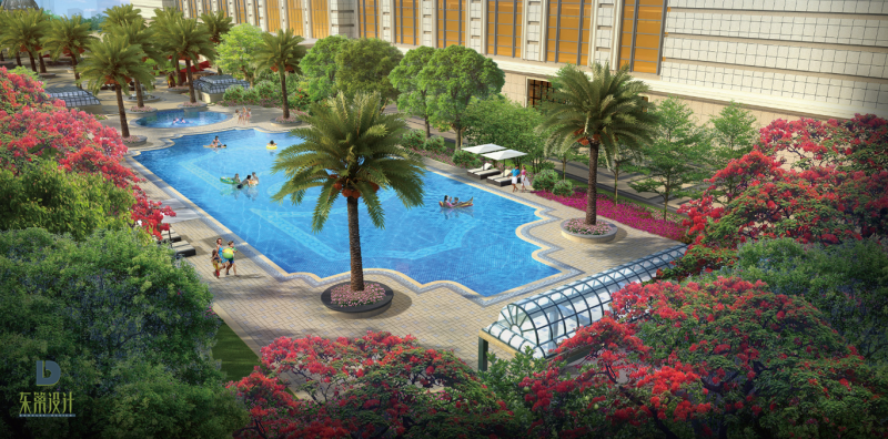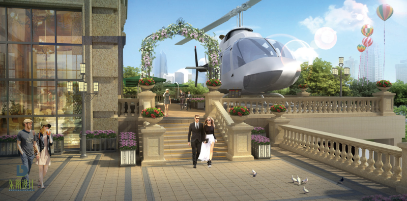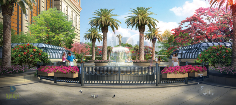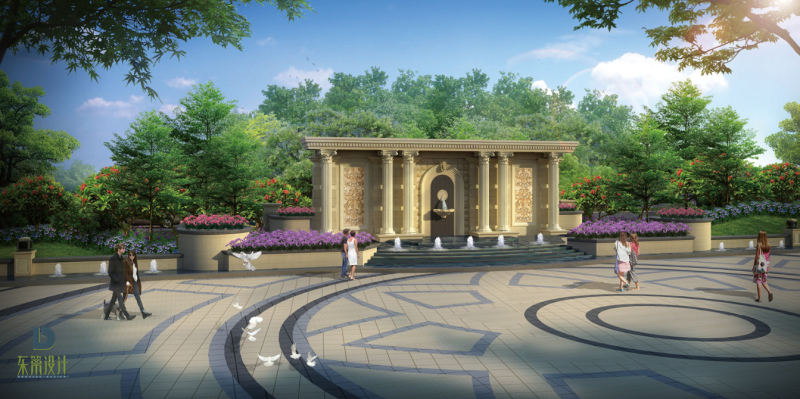 景觀設(shè)計(jì)中,定位為法式園林風(fēng)情,注重空間營(yíng)造。通過(guò)水景、鋪裝、小品體現(xiàn)高貴同時(shí),根據(jù)以人為本的原則,著重體現(xiàn)異域風(fēng)情。
