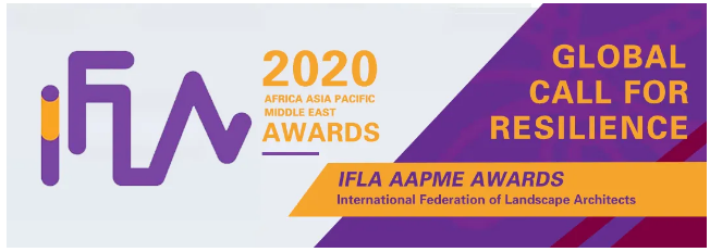 IFLA AAPME獎 2020- “全球 抗災呼吁” 是由IFLA非洲,亞太地區和中東(AAPME)地區發起的一項全球大獎。這是一項國際景觀設計和規劃獎,以表彰其具有韌性的國際獎項,該獎項向IFLA所有地區和世界各地的從業人員開放,獎項共設分析與總體規劃、文化與傳統、經濟可行性、雨洪管理等九個類別,分別評出杰出獎(OUTSTANDING AWARD)、優秀獎(AWARD OF EXCELLENCE)、榮譽獎(HONORABLE MENTION),旨在展示基于景觀的單學科和多學科項目,增強城市和自然系統的彈性。